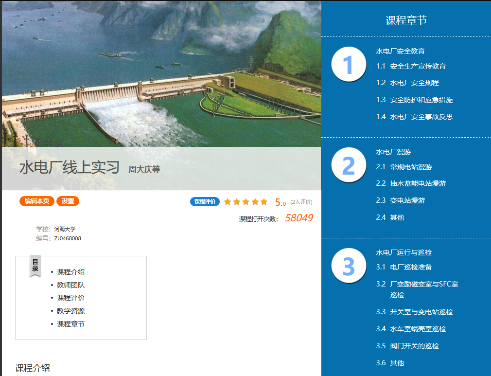 一场突如其来的疫情不仅打乱了正常的教学秩序,也让学生正常的实践实习变得遥不可及。为了保证学生的课程有质量、实习有新意,能源与大赢家比分 及时组织骨干教师对开学即将面临的教学和实践实习工作进行了研讨和预判,充分考虑学期实践实习的多变因素,未雨绸缪,精心筹建,建立了一支由多专业教师参与的实习“金课”团队,利用大赢家比分 课堂在线网络教学平台,历经2个月时间完成整体课程的搭建、模拟、调试和试运行,让“水电厂线上实习”课程在线上“活”起来。整个课程主要分为“水电厂安全教育”、“水电厂漫游”、“水电厂运行与检修”、“水电厂主机设备安装与拆卸”、“水下航行器虚拟仿真”五大主体板块以及补充板块“水电厂工作生活花絮”。各大主体板块不仅提供了相关内容的基本文本和图片介绍,更通过虚拟仿真、三维漫游、线上随堂测试、师生线上互动的方式来形象介绍和巩固水电厂相关知识要点,学生足不出户就可以完成实践实习!