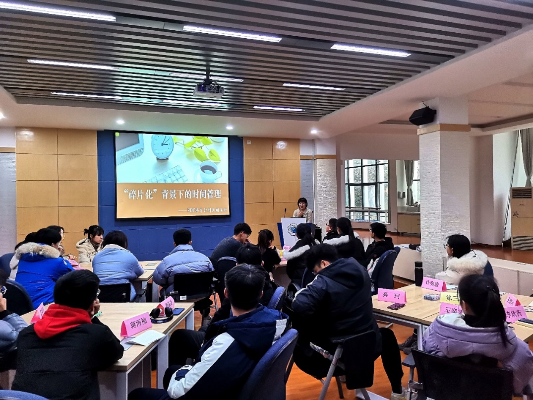 1229日,能电院组织学生骨干代表开展以“‘碎片化’背景下的时间管理”为主题的生涯教育团体辅导。活动围绕低年级学生面临的时间规划问题及困难展开,院团委书记、2020级本科生辅导员雷镕甄老师担任主讲,学生代表共计24人参加。