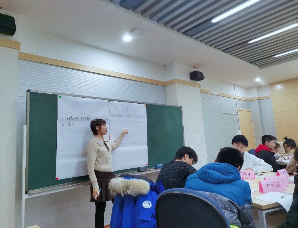 本次团辅采取随机分组、互动交流的体验式培训方法,从1个问题“你在做什么”展开,总结并分享过去72个小时学生在学习、休息、娱乐等方面的时间分配。