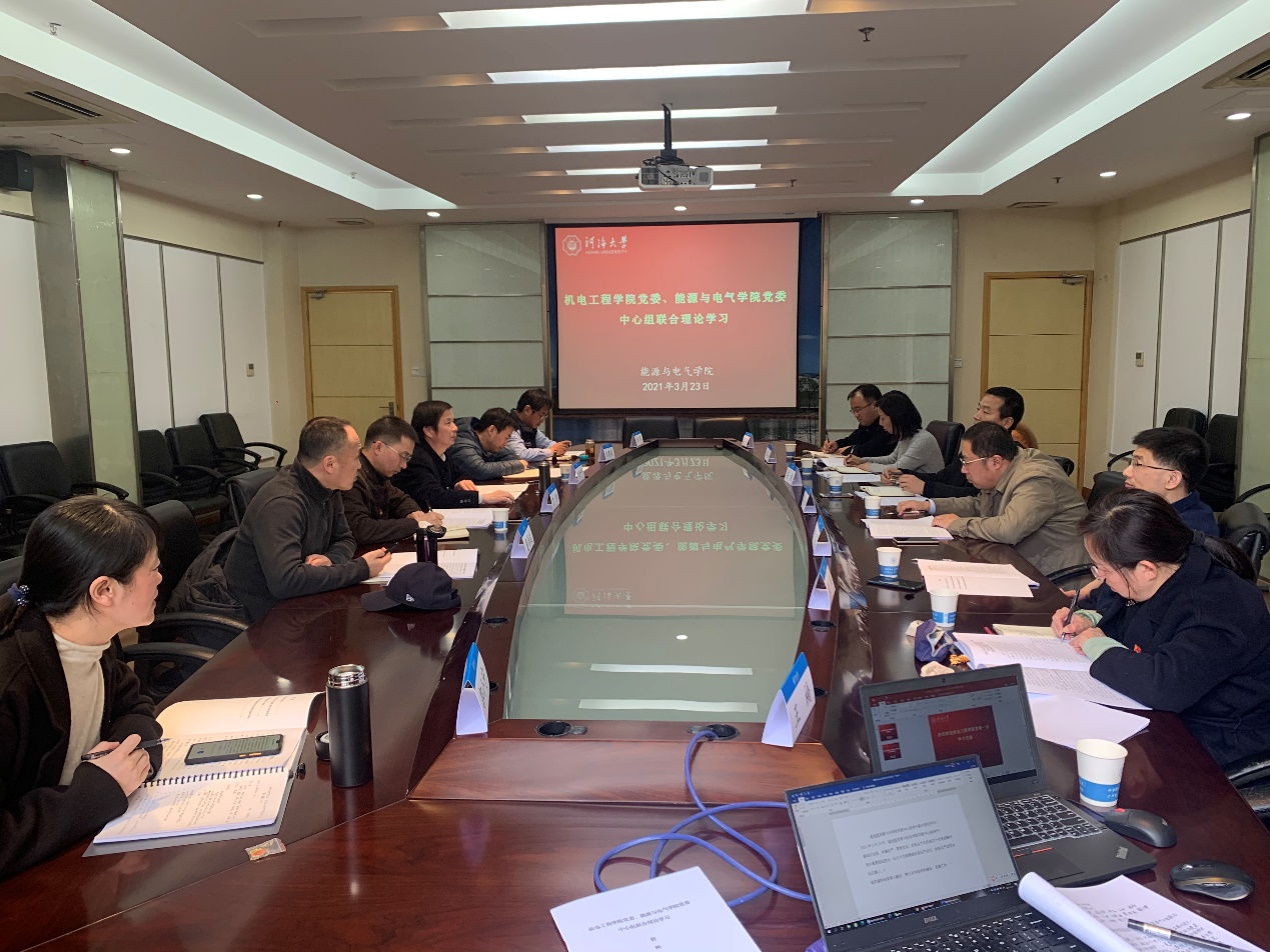 2021年3月23日,能电大赢家比分 党委与机电大赢家比分 党委举行了中心组联合理论学习。能电大赢家比分 、机电大赢家比分 领导班子成员参加了会议。