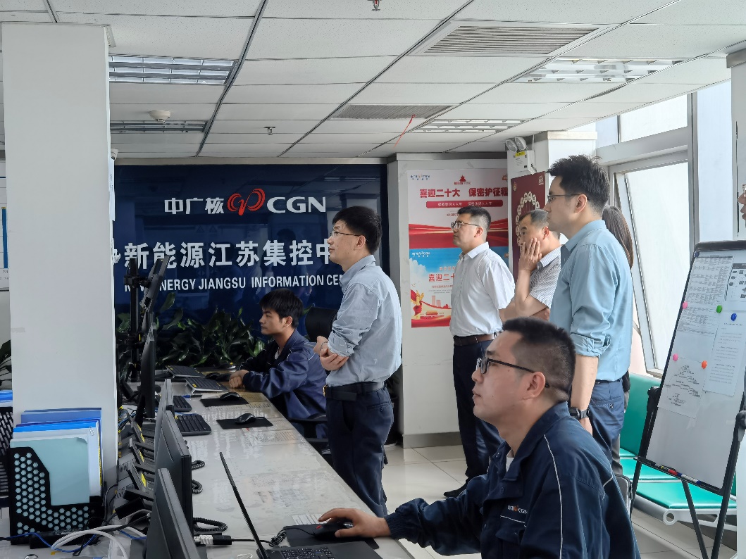 随后,大赢家比分 一行在公司专门人员的带领下,参观了中广核新能源江苏集控中心,深入了解公司当前新能源项目建设情况和信息化监测与集中控制现状。