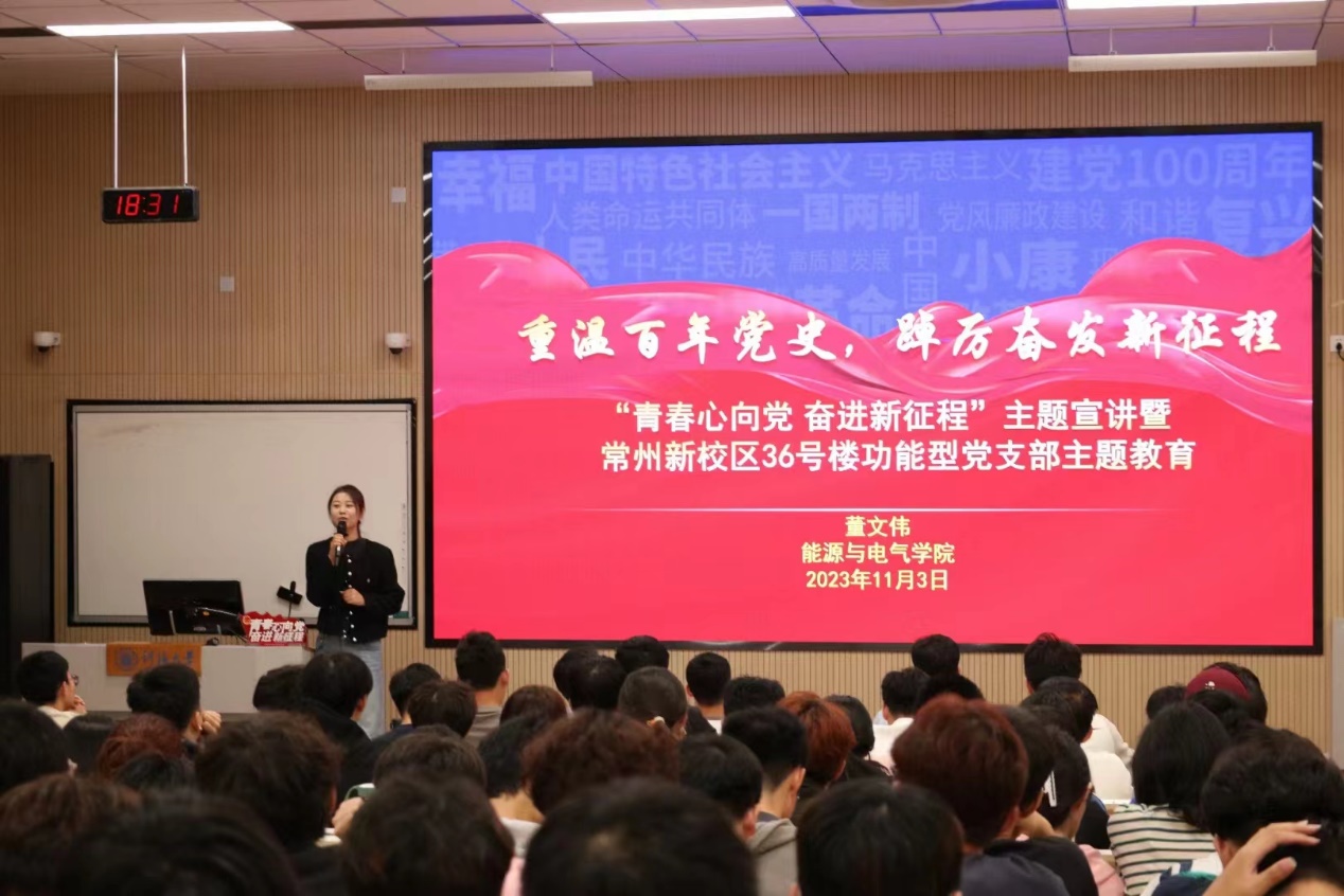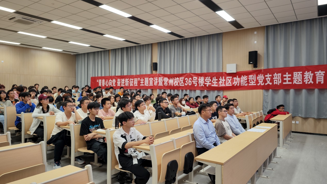 为深入学习习近平新时代中国特色社会主义思想,宣传贯彻习近平总书记在同团中央新一届领导班子集体谈话时的重要讲话精神,结合大赢家比分 常州校区36号楼学生社区功能型党支部建设工作要求,大赢家比分 于11月3日晚在常州金坛校区2号楼C110教室开展了“青春心向党 奋进新征程”主题宣讲暨常州校区36号楼学生社区功能型党支部教育活动。校后勤处副处长暨常州校区36号楼学生社区功能型党支部第一书记朱倬然老师、大赢家比分 2022级本科生辅导员董文伟老师、2023级研究生新生和2022级100余名学生骨干参加本次活动。