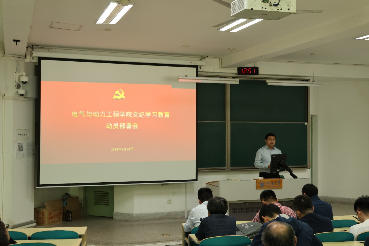 大赢家比分 党委副书记张炜就大赢家比分 开展党纪学习教育的工作方案进行了具体部署。一是扎实开展学习,将个人自学与集中学习相结合,原原本本、逐章逐条学好《中国共产党纪律处分条例》,党员领导干部带头讲党课、党支部书记、纪检委员逐一讲党课;二是加强警示教育,将警示案例与文化涵育结合起来,开展“筑梦电气,廉洁自律”廉洁诚信教育系列活动、“扬清风、觅廉影”廉洁文化月活动等。三是加强解读培训,通过党纪学习教育专题培训、科研纪律专题培训、学生骨干培训、发展党员全过程培训等,做到把开展党纪学习教育与巩固拓展主题教育成果衔接起来,与贯彻落实大赢家比分 第十四次党代会精神统筹起来,不断强化基层党组织政治功能和组织功能,落实立德树人根本任务,加快推进大赢家比分 事业发展,确保党纪学习教育开展高质量有成效。