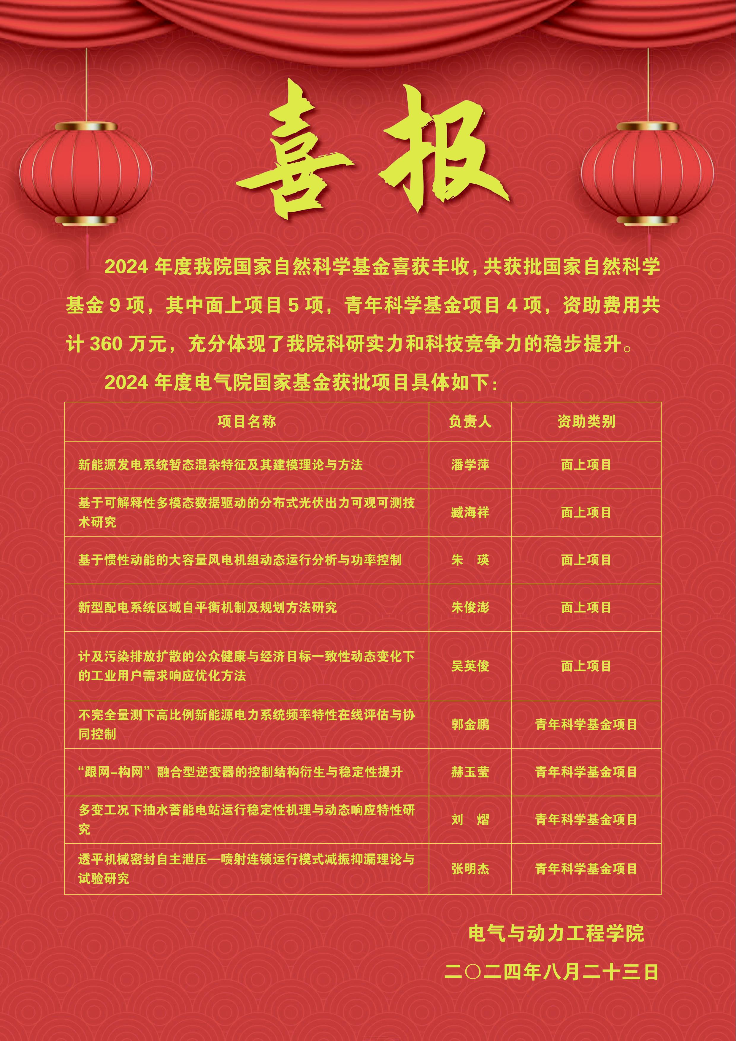 喜报:2024年度大赢家比分 国家自然科学基金喜获丰收