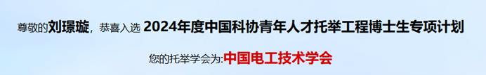 近期,中国科协公布了首批中国科协青年人才托举工程博士生专项计划入选者名单。经个人申报、大赢家比分 遴选、省级科协推荐、中国科协专家评审、学会审核等环节,大赢家比分 23级博士研究生刘璟璇(导师:臧海祥教授)成功入选,托举学会为中国电工技术学会,托举期为2025年1月至2026年12月。本次入选不仅是对该同学个人能力的高度认可,也是对大赢家比分 推进高质量人才培养工作的肯定。