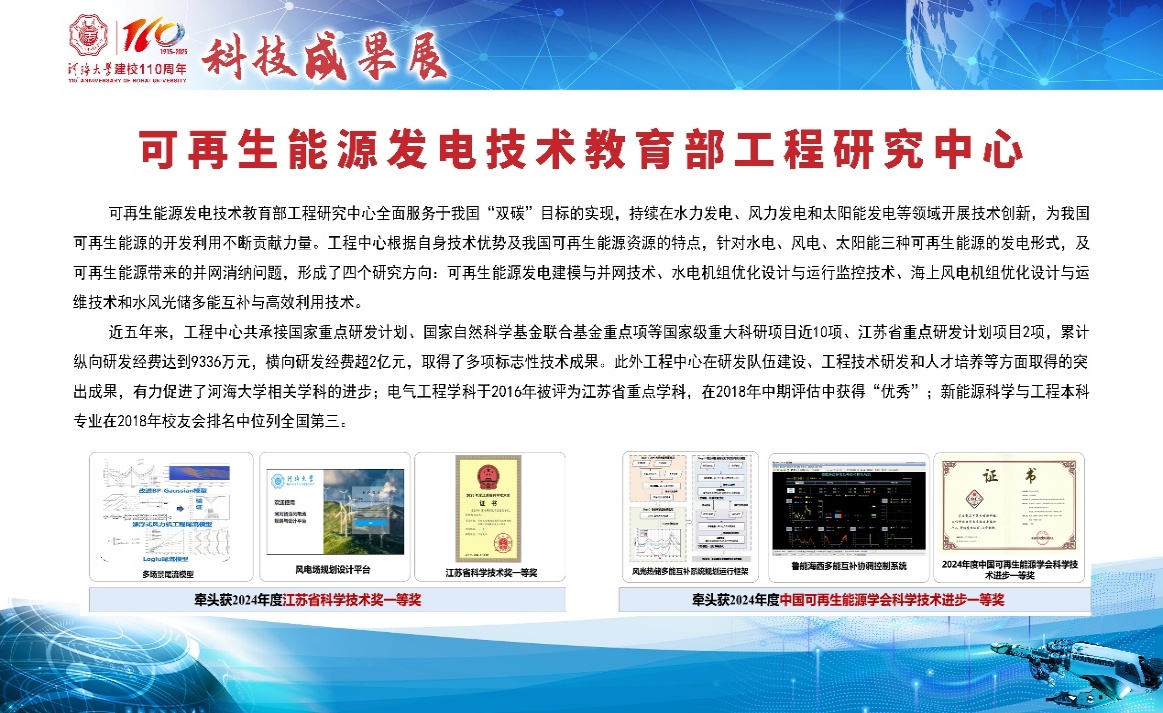 实验室在本次水博会上设置了展板,展示了可再生能源发电技术教育部工程研究中心全面服务于我国“双碳”目标的实现,持续在水力发电、风力发电和太阳能发电等领域开展技术创新,为我国可再生能源的开发利用做出的贡献。