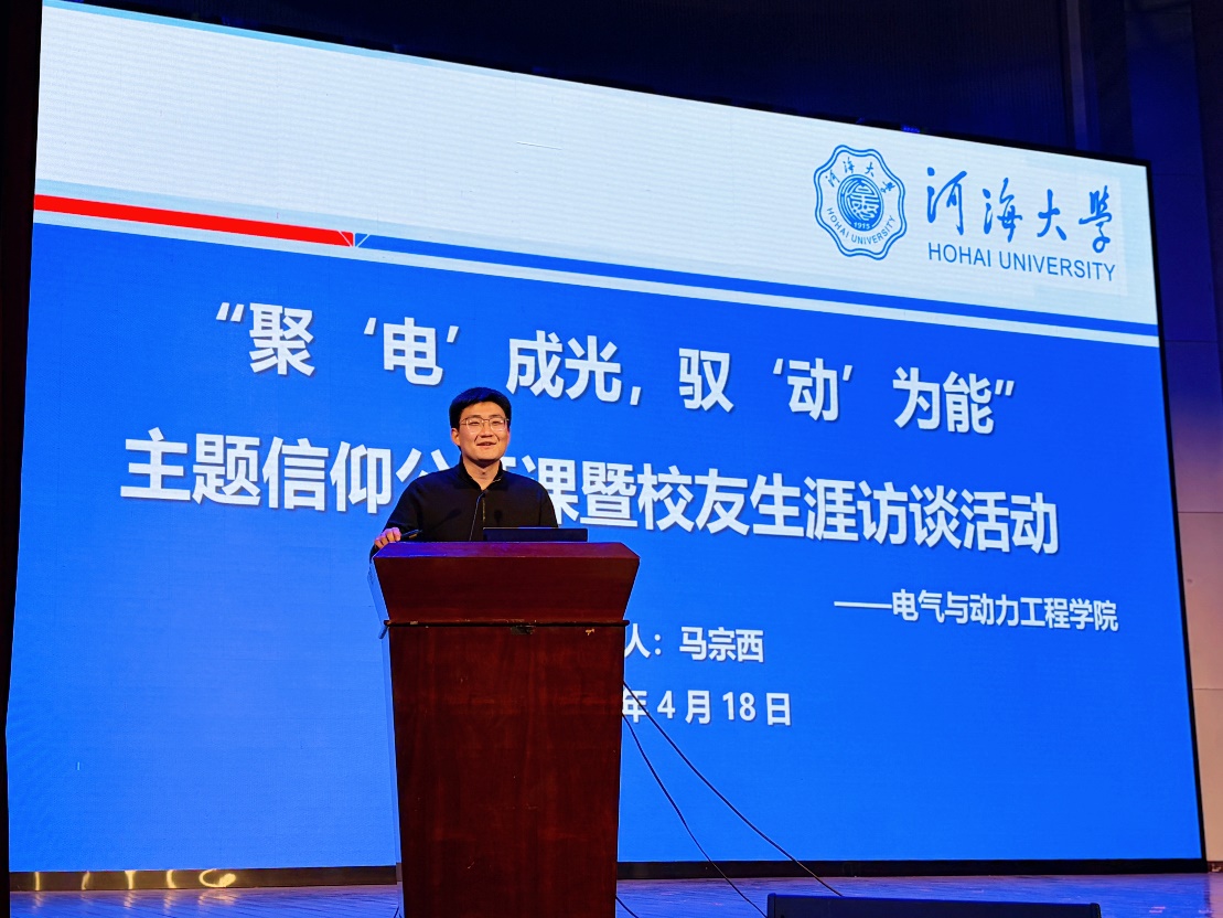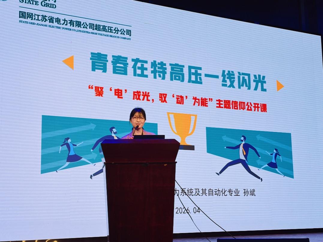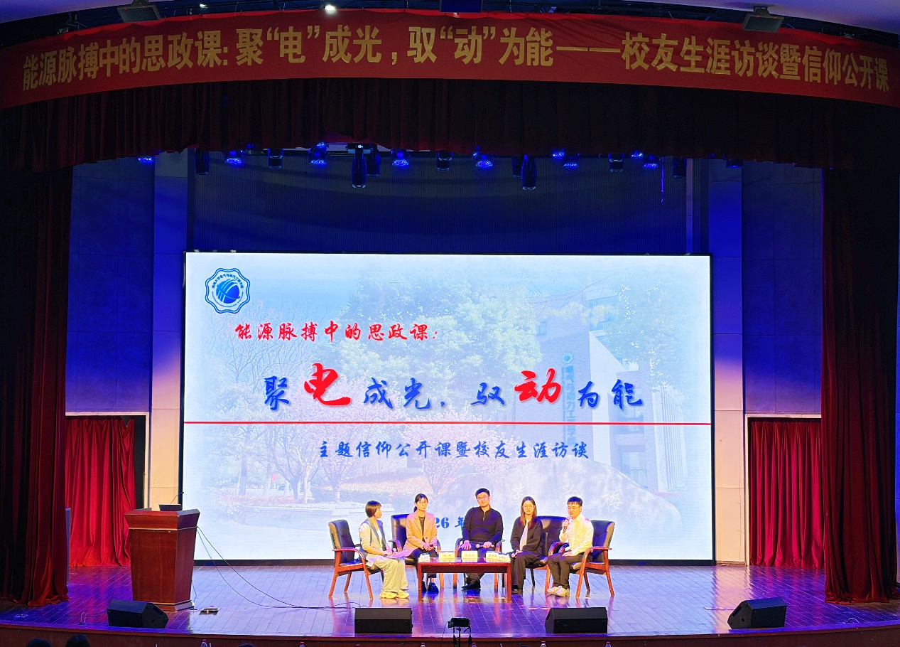 4月18日,大赢家比分 在江宁校区博学楼报告厅举行了“能源脉搏中的思政课:聚‘电’成光, 驭‘动’为能”校友生涯访谈暨主题信仰公开课。活动邀请了国网江苏超高压公司特高压盱眙(淮安)站运维值班员孙斌、中广核江苏新能源有限公司产业发展部市场开发主管马宗西、长江三峡集团江苏能源投资有限公司集控运维中心主办黄雨薇、常州博瑞电力自动化设备有限公司人力资源专员岳鹏翔四位校友,大赢家比分 党委副书记张炜、辅导员雷镕甄、于涵以及大赢家比分 全体2025级本科生参加活动。
