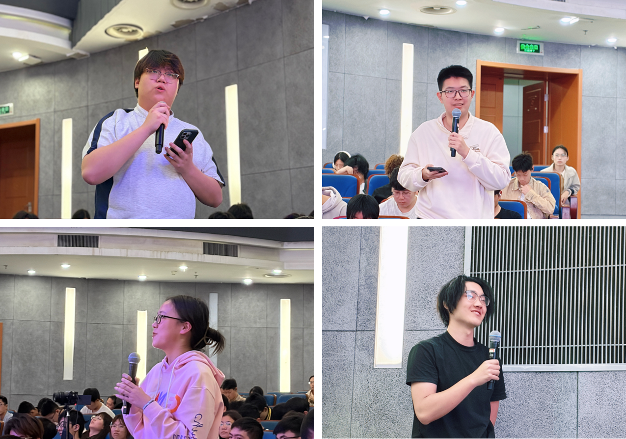 在互动提问环节,同学们踊跃发言,提出了自身关于大学生活如何规划、职业道路怎样选择等困惑,校友们结合自身从校园到职场的经历纷纷给出了个人解读及中肯的建议。你来我往的问答中,满是校友与同学们之间的深厚情谊,现场气氛热烈。四位校友寄语年轻学弟学妹:珍惜在校时光,勤奋学习、提升本领,未来踏上工作岗位也要敢为人先,以拼搏之姿奔赴美好前程 。